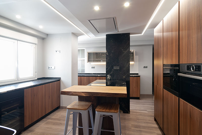 Dentro de la reforma integral de esta vivienda, acordamos con nuestro cliente llevar la cocina un paso más allá, convirtiéndola en el centro y corazón de la casa.